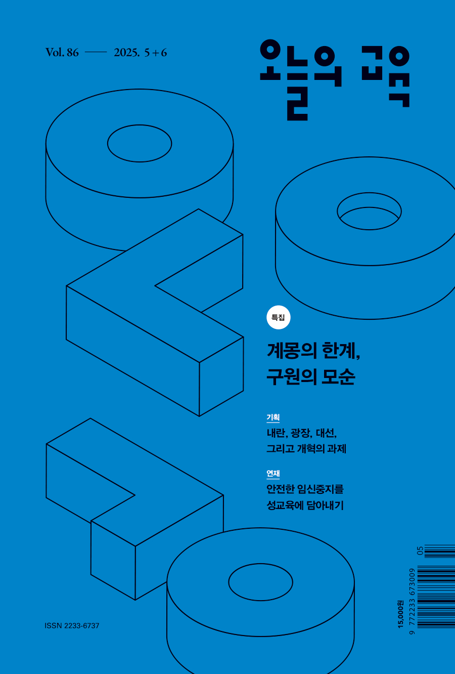 《오늘의 교육》 86호는 최근 불거진 민주주의의 위기에 대한 해법으로 교육을 소환하는 방식에 물음표를 던진다. 특집에서 제기된 진단과 제안은 교육의 역할은 무엇인지, 우리 사회의 현실은 어떠한지를 고민하게 만든다. 기획에서는 12.3 내란과 광장에서의 투쟁 이후 제안된 사회 개혁 과제와 더불어 대통령 선거를 지나 차기 정부가 교육정책에서 유념해야 할 점을 다루었다. 수업 지면에는 대안적이고 적극적인 현장체험학습의 사례를 소개했고, 초등학교에서 윤석열 대통령 탄핵 심판 선고 중계를 시청한 생생한 경험담도 에세이로 담았다.