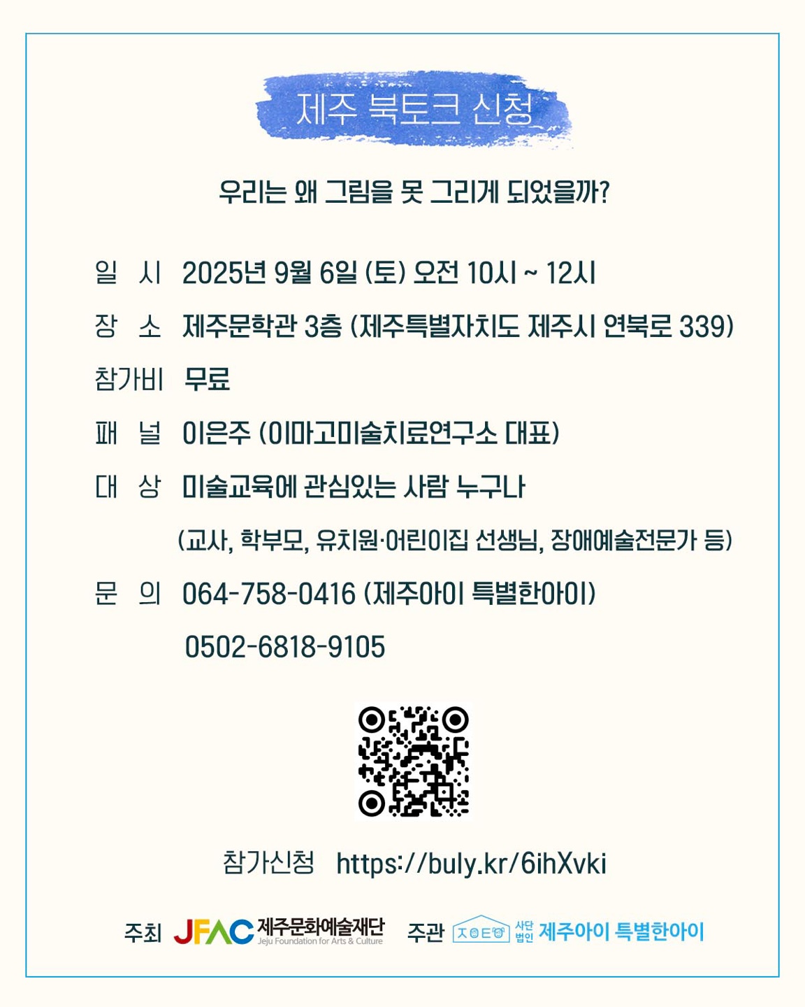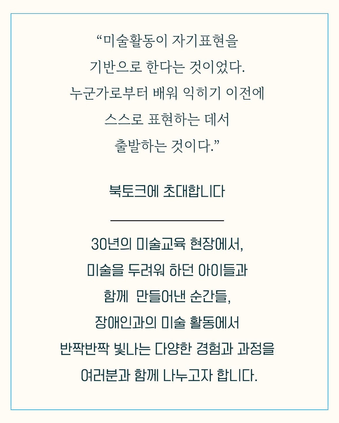 미술 교육에 관심 있는 사람 누구나 (교사, 학부모, 유치원·어린이집 선생님, 장애예술전문가 등)