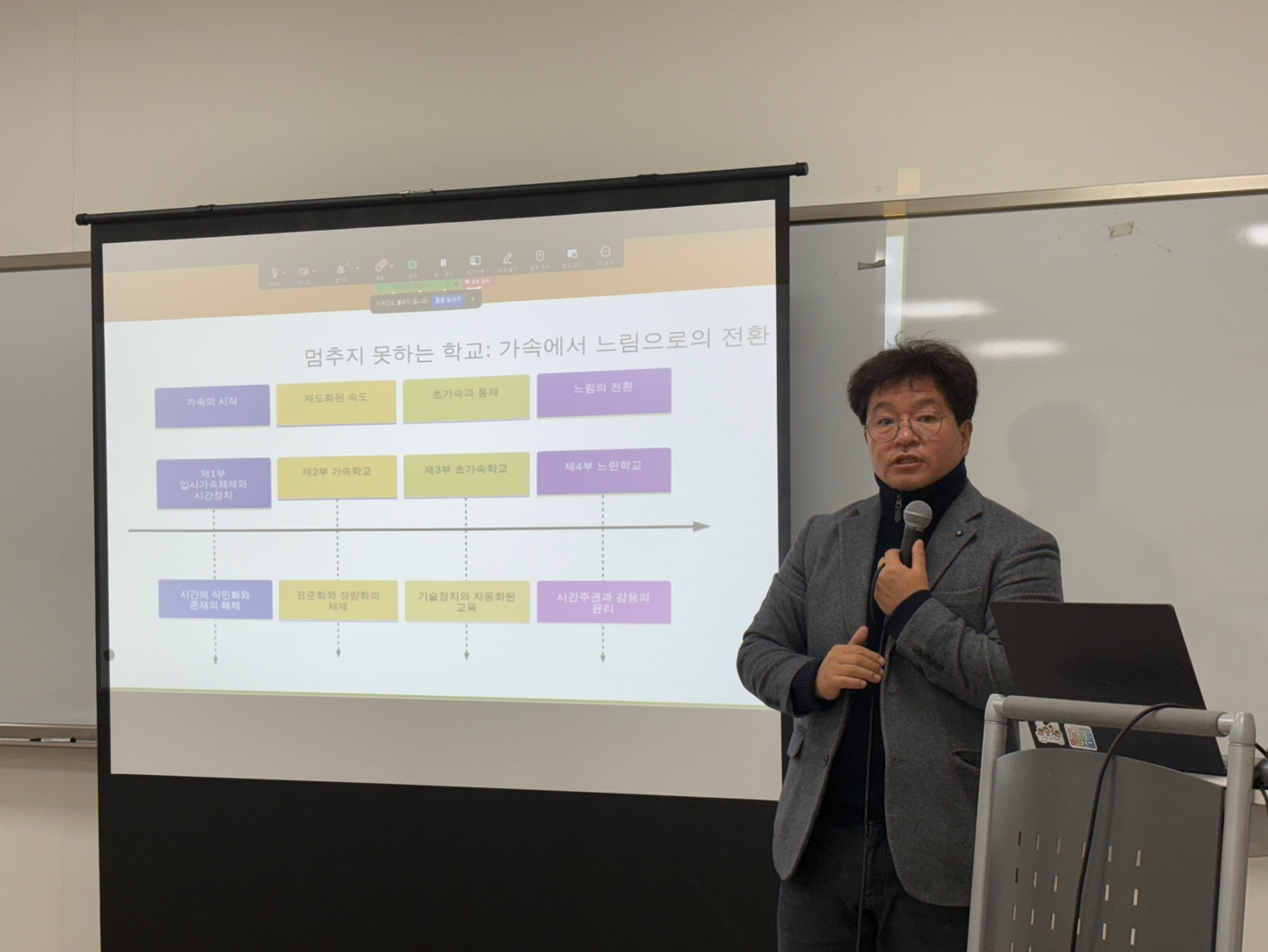 한국 교육의 근본적 문제를 존재를 삼키는 가속학교, 입시가속체제로 진단한 책 <멈추지 못하는 학교 - 입시가속체제와 시간주권>. 무거운 질문을 던진 이 책에 담긴 생각과 고민을 저자와 독자들이 함께 이야기 나누려 합니다.