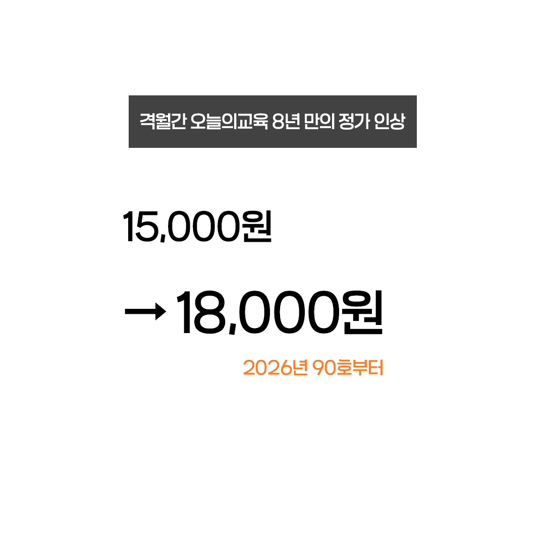 2026년 1+2월호부터(통권 90호) 다음과 같이 정가를 인상합니다.