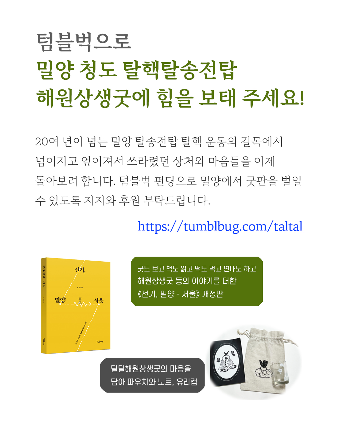 책 발자국 한글 자모 편 북펀드(인터넷 서점 알라딘과 진행)는 마무리되었고 탈탈 해원상생굿 텀블벅 펀딩이 진행중입니다. 《멈추지 못하는 학교》 북토크도 엽니다. 많이들 함께해 주시길 바랍니다.